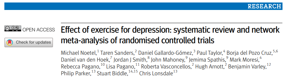 A comienzos de este año múltiples investigadores publicaron un paper el cual tuvo por objetivo identificar la dosis óptima y la modalidad de ejercicio adecuada para el tratamiento del trastorno depresivo mayor, buscando contrastar así los efectos que pueden tener estas actividades en comparación con la psicoterapia, los antidepresivos y otras condiciones de control.